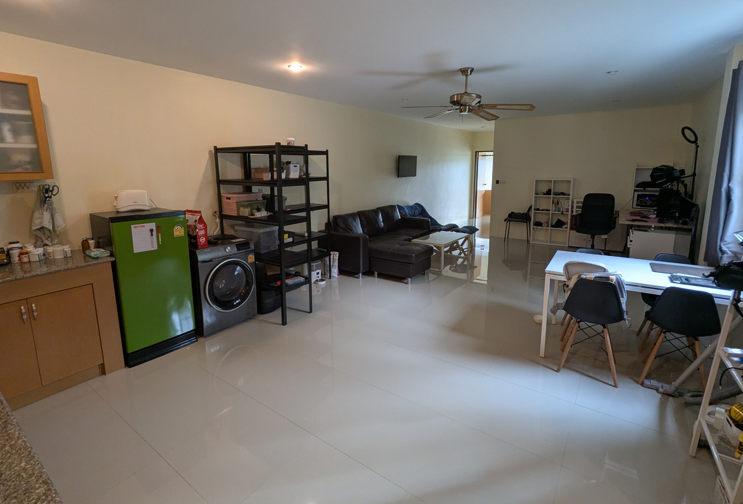 Живу здесь 2 года, многое что было приобретено в квартиру лично: дополнительный кондиционер, 55"4K телевизор, стиральная машина(с функцией сушки), обеденная зона и большой рабочий стол, прочая мебель и много всего по мелочи.