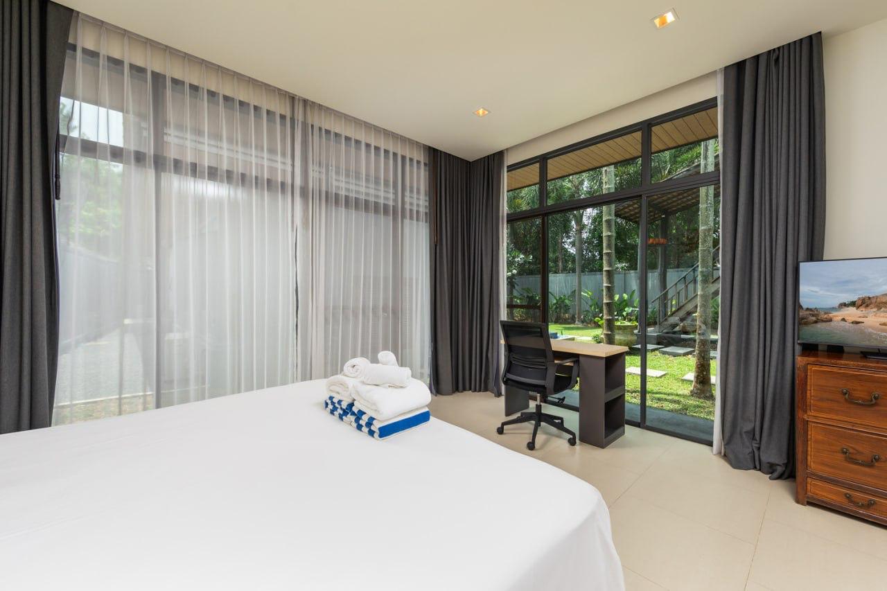 Современная вилла Bulan с тремя спальнями и частным бассейном расположена в зелёном районе Saiyuan, всего в 10 минутах от пляжа Nai Harn. Просторные светлые комнаты, открытая планировка и отдельный домик для йоги создают атмосферу гармонии и уединения. Идеальное место для семейного отдыха, digital-номадов и любителей йоги.