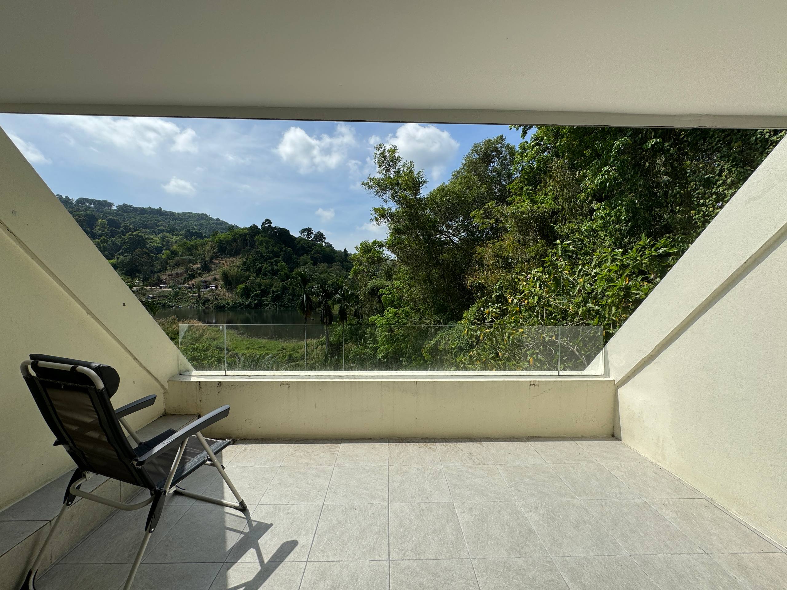 студия 60м2, в состоянии заезжай и живи, с мебелью, есть большой балкон с видом на горы и лес. При желании можно сделать удобную планировку с изолированной спальней- место позволяет. Комплекс находится в тихом месте, рядом есть места для прогулок, в том числе водохранилище. Есть бассейн, тренажерка, сауна, на территории комплекса есть магазин и кафе. Круглосуточная охрана, парковка. В комплексе разрешено проживаете с домашними животными. Место пользуется спросом для аренды. Central Festival, Macro, Big C 10 минут. Пляжи в 20-30 минутах.