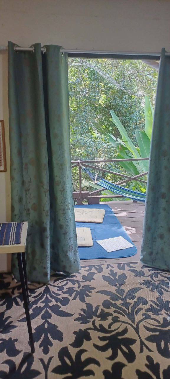 Дом стоит на обрыве, и ваша студия — это капсула, подвешенная в зелёном океане тропического леса. Здесь нет панорам моря, зато есть бесконечная глубина и текстура живого, дышащего мира прямо вокруг вас. Полная тишина, нарушаемая только шелестом листьев и пением цикад.