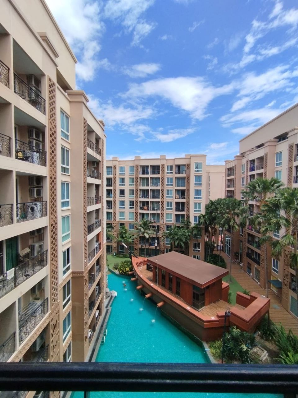 На территории большой бассейн с джакузи и водными горками, детский бассейн, тренажерный зал, круглосуточный магазин 7/11, кафе, массажный салон, парковка и охрана 24 часа.