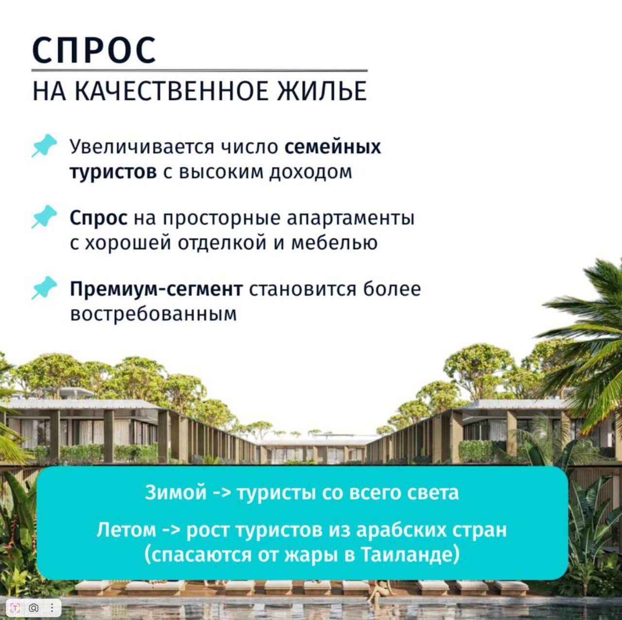 Сделали для вас анализ ключевых изменений на рынке недвижимости Пхукета, ведь для приобретения жилья на острове важно понимать текущие тренды. Объясняем, как они влияют на покупку недвижимости. Листайте карточки