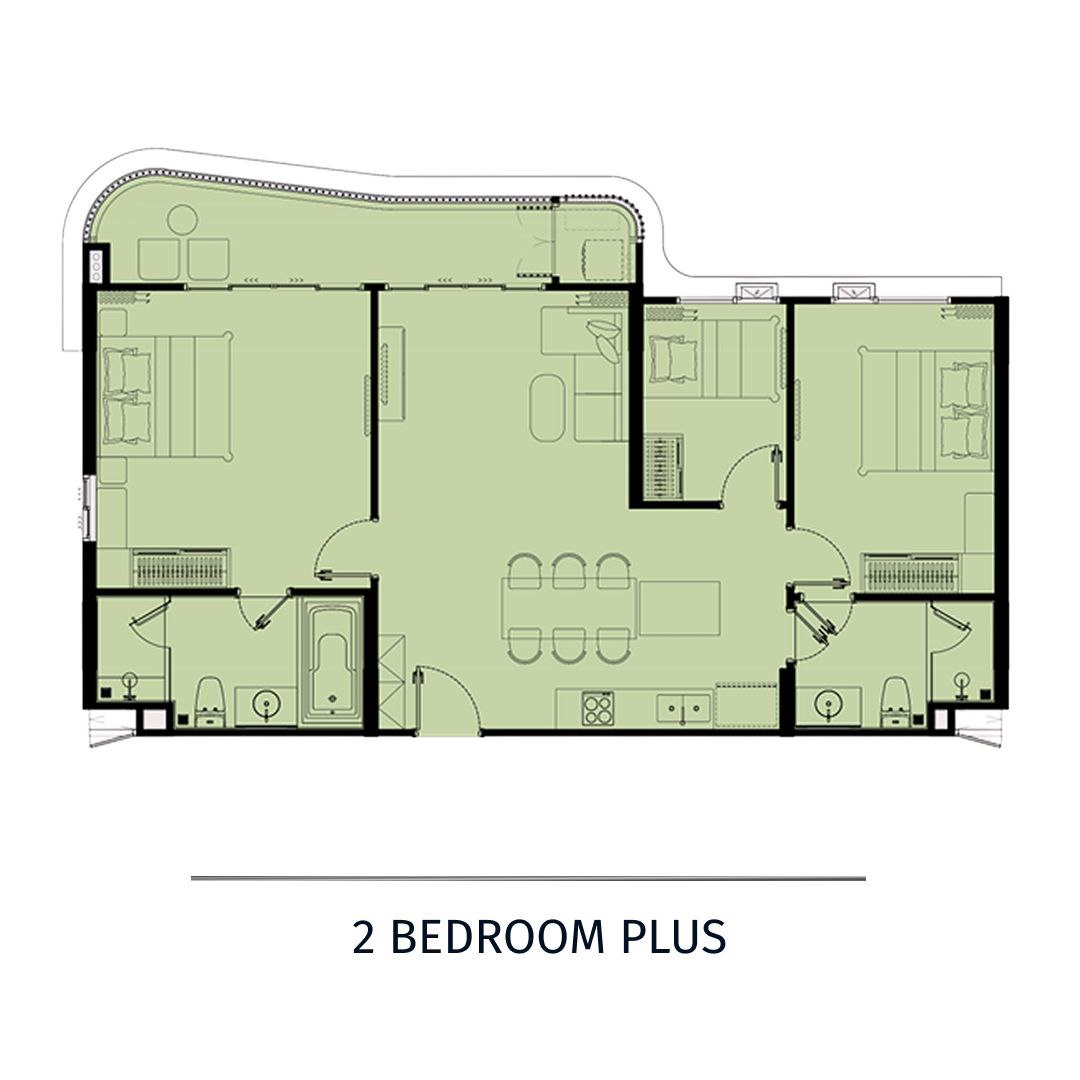 • 1 Bedroom Plus — золотая середина между инвестиционной привлекательностью и собственым комфортом. Вторая комната отлично подойдёт для размещения семьи или гостей или в качестве кабинета.