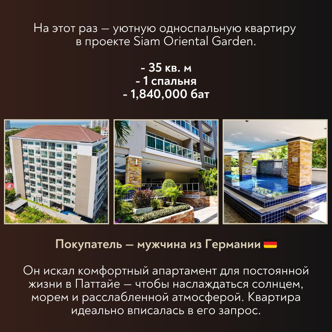 На этот раз — уютная односпальная квартира в проекте Siam Oriental Garden.