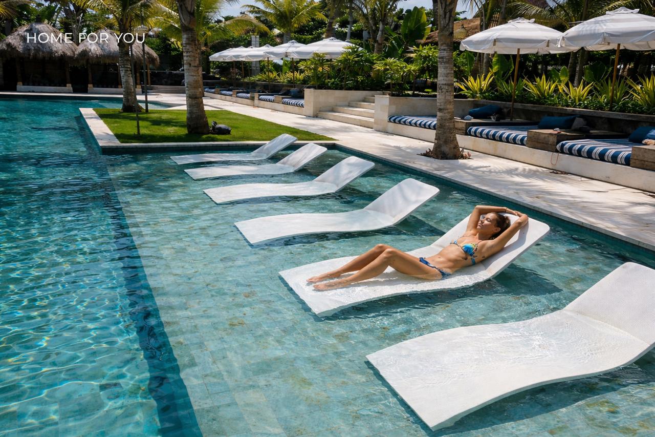 • 1 этаж: бассейны у пляжа, плавающие лежаки, бар и ресторан(с кондиционером), лаунж-зоны, детский клуб