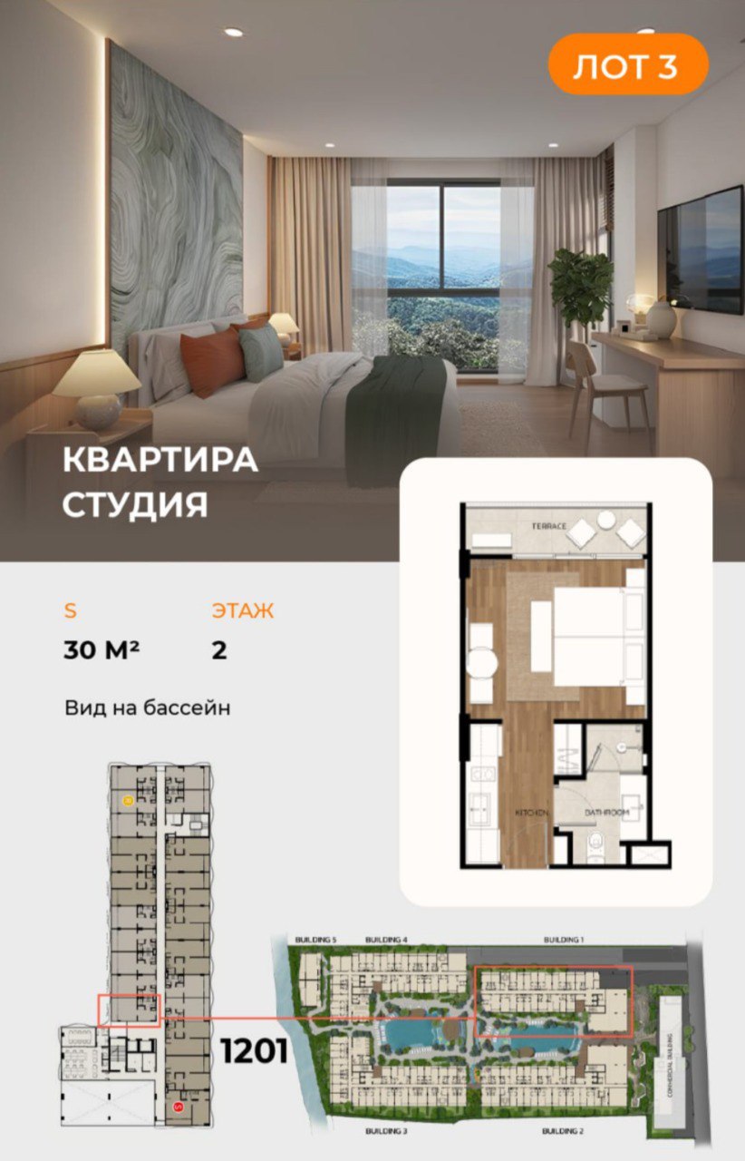 Лот 3 Просторная студия для аренды на Бангтао