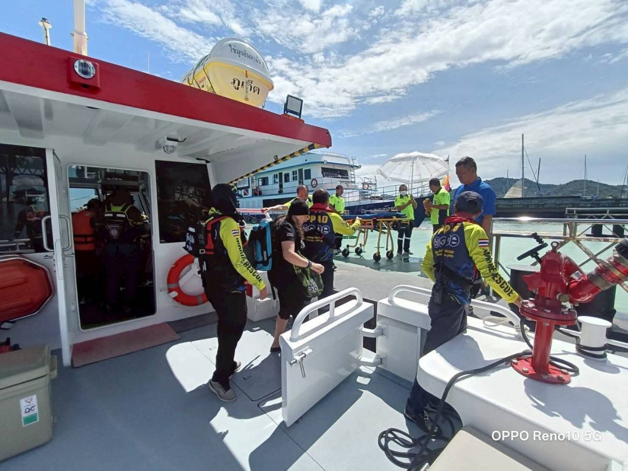 ...После получения уведомления г-н Реват Арироп, президент ПАО Пхукета, немедленно распорядился, чтобы Центр помощи туристам(Жемчужный центр)направил спасательно-реанимационное судно"Андаманский Жемчуг 5"с персоналом для оказания немедленной помощи.