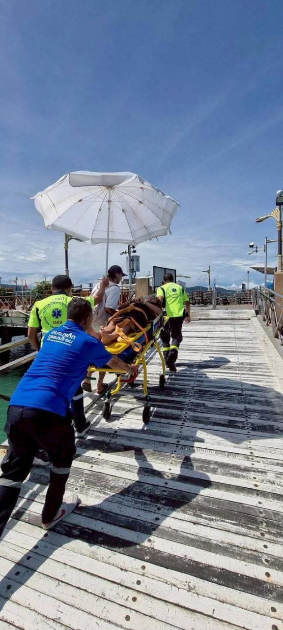 По прибытии на место была обнаружена пациентка — девочка 12 лет, находящаяся в состоянии спутанности сознания и с рвотой с примесью крови. Спасатели оперативно оказали первую помощь, начали эвакуацию, обеспечили кислородной поддержкой и срочно доставили на берег в заливе Чалонг, где передали в машину скорой помощи"Жемчуг 1"для транспортировки в больницу Чалонг согласно указаниям.
