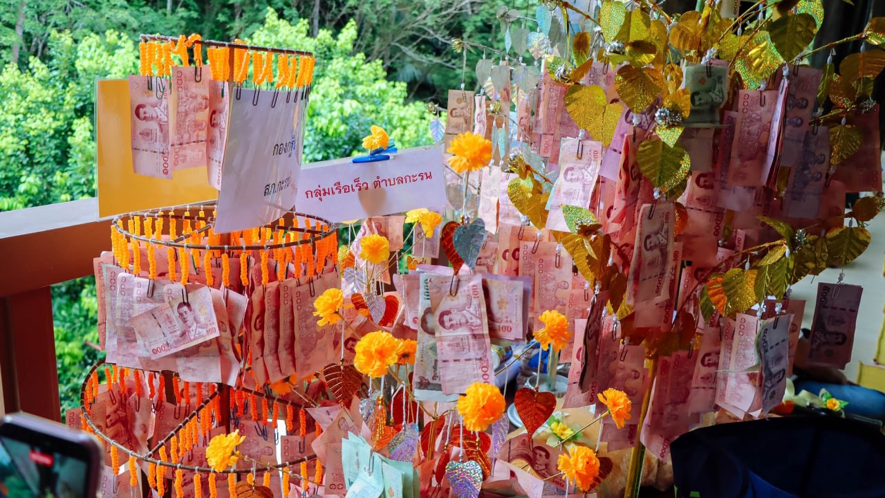 Первая церемония Катхин в тамбоне Карон прошла утром 12 октября. Новые шафрановые робы и другие подношения приняли монахи небольшого храма Wat Pa Yuan Phueng в джунглях на склоне холмов Наккерд.