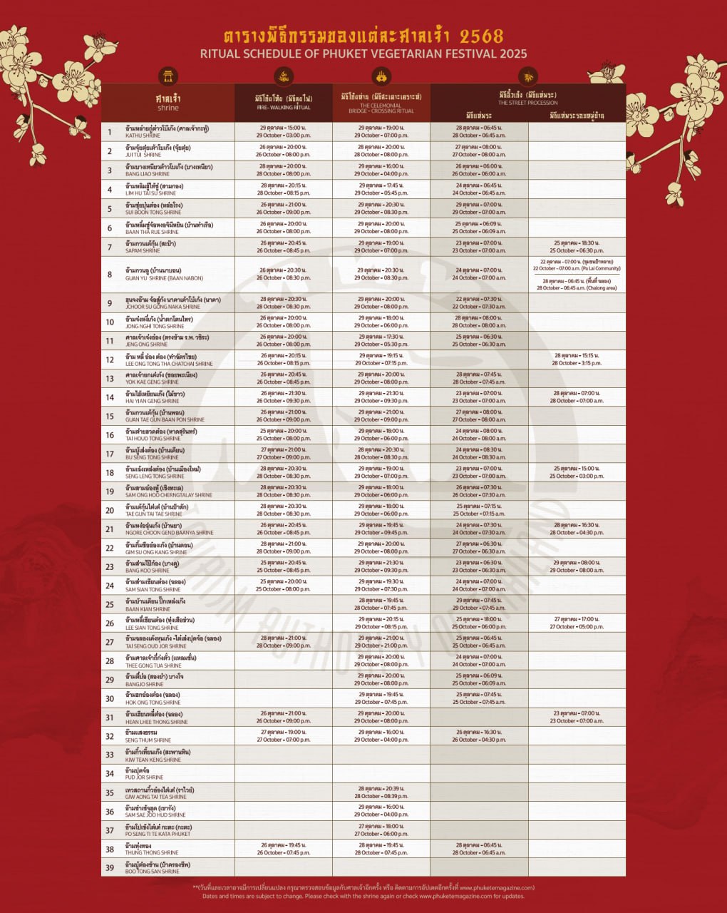 ️22-29 октября будут проходить утренние шествия масонгов и вечерние храмовые ритуалы, такие как хождение по углям. Первое шествие проведет 22 октября Naka Shrine.