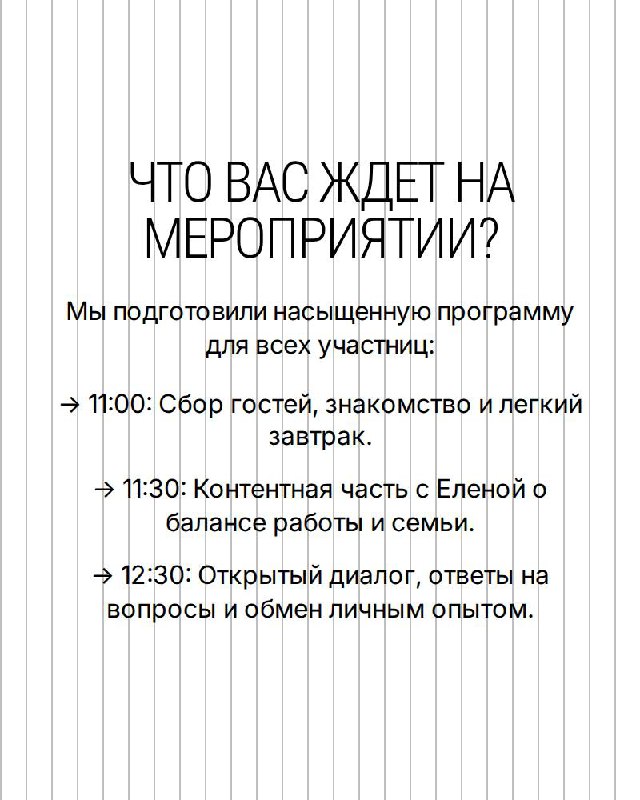 Приходите — получите энергию, поддержку, новые знания и проведёте утро, которое зарядит вас надолго!