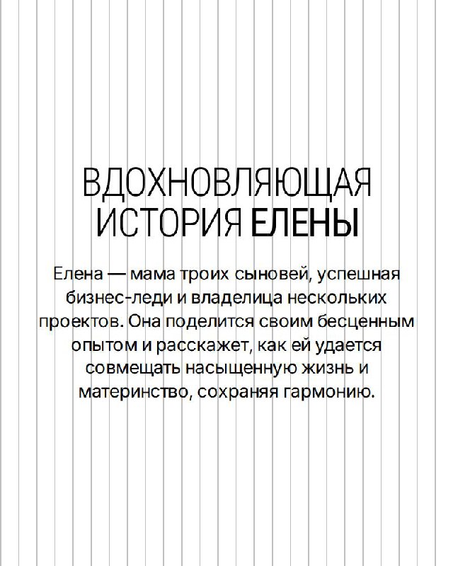 Спикер: Елена — мама троих сыновей, 15 лет в браке, владелица детского сада Limpopo, верёвочного парка Ko Fun и семейного ресторана Pinzeria.