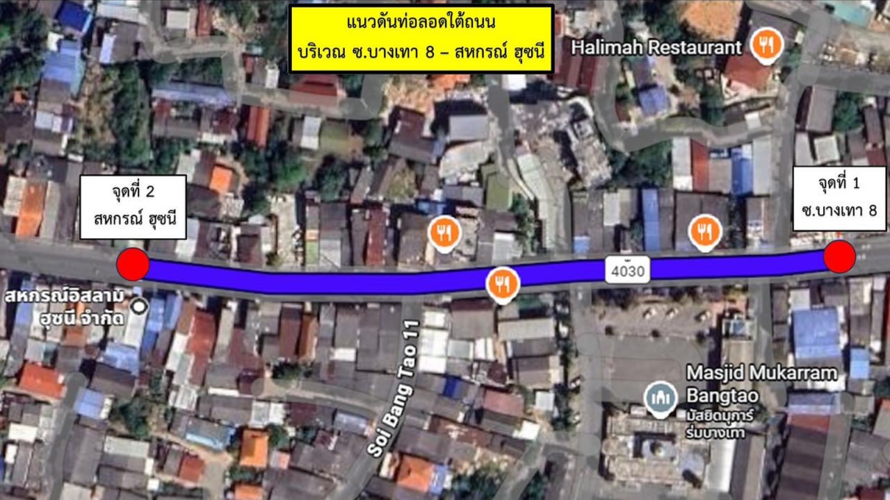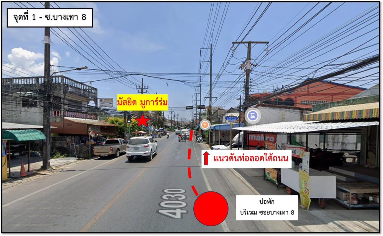 Согласно приложенной карте, непосредственно сами работы будут проводиться на участке от въезда на Soi Bang Tao 8 до здания Hosnee Islamic Cooperative. Время проведения работ – с 21:00 вечера до 5:00 утра.